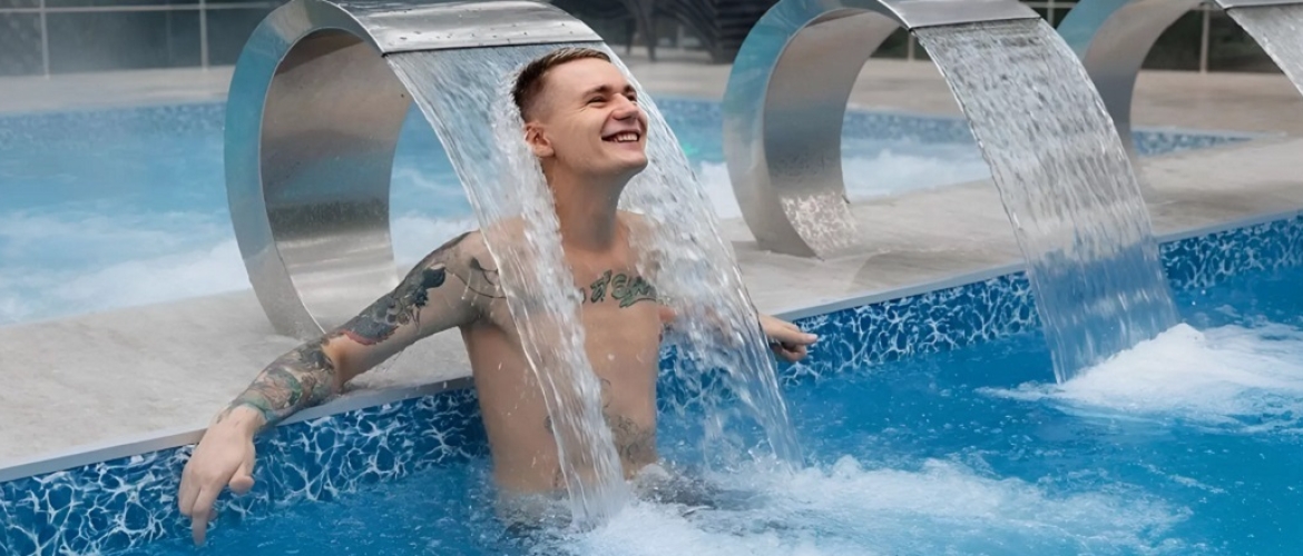 - Горячий бассейн с температурой воды +36-42°C и водными активностями.